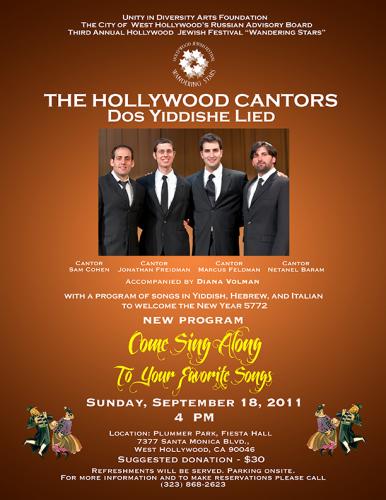 Разрешите от имени City of West Hollywood and Unity in Diversity Arts Foundation пригласить вас на III Ежегодный Фестиваль Еврейской Культуры "Wandering Stars", на концерт канторов в рамках этого фестиваля, который состоится